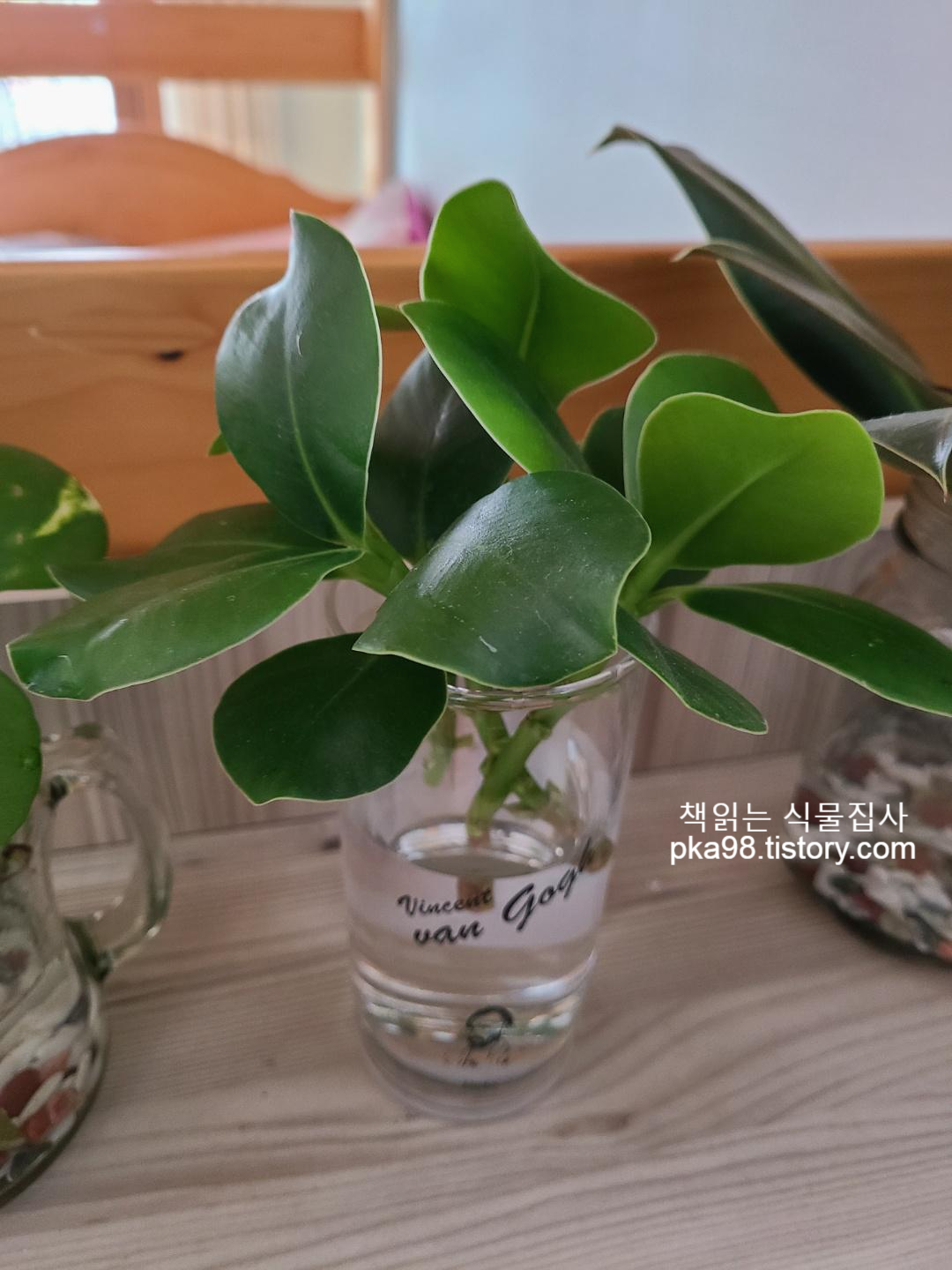 안반에 수경재배중인 고무나무 친구들 옆에도