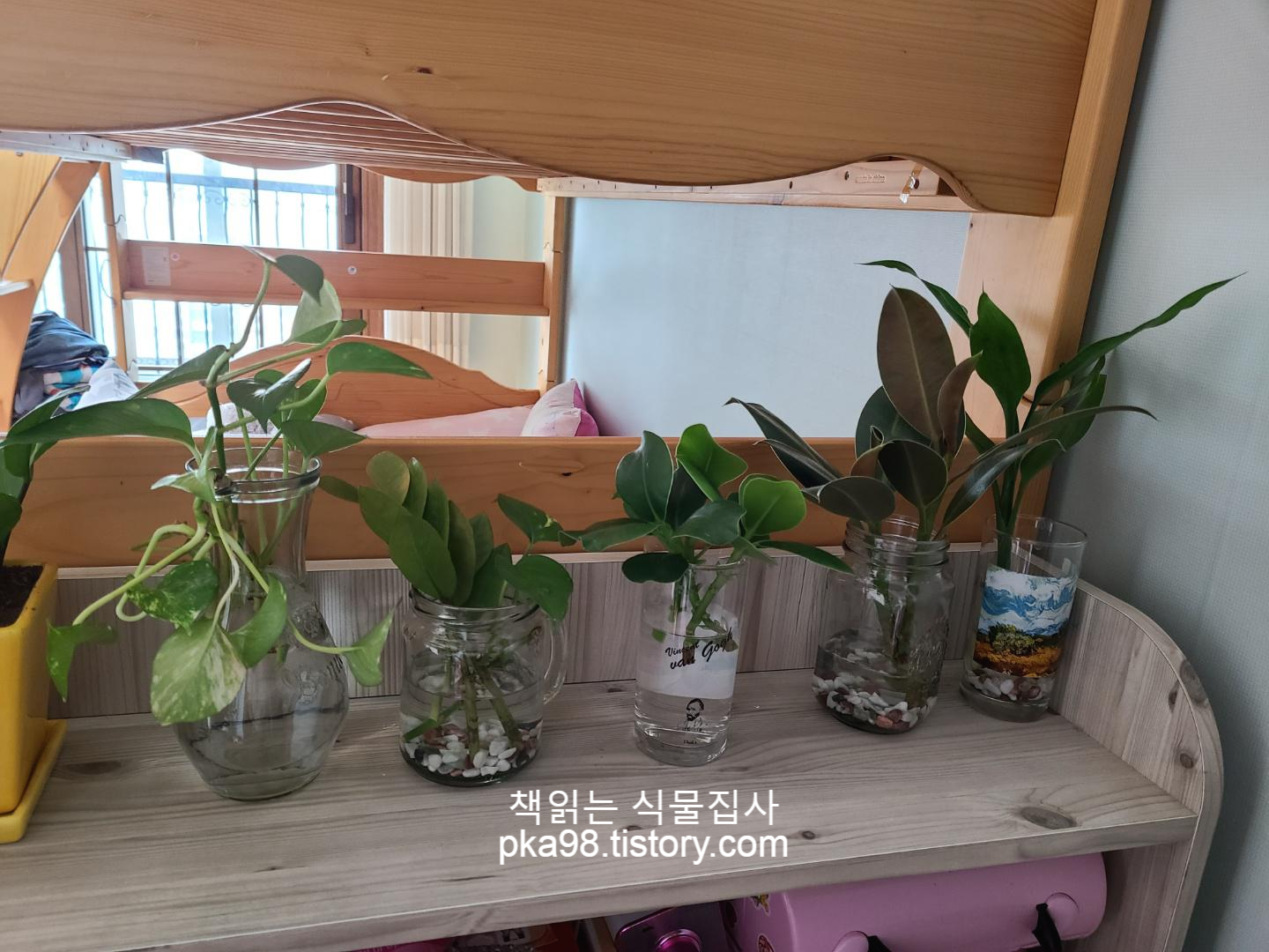 아이들 방에 수경재배중인 친구들과 뿌리 날때까지만